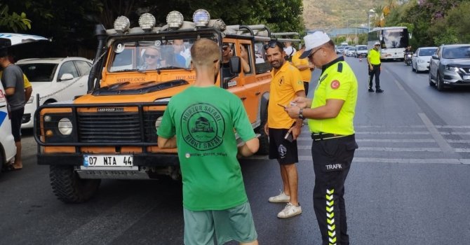 Antalya'nın Alanya ilçesinde polis ekipleri, safari düzenleyen araçlara yönelik denetim yaptı.