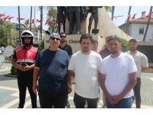 Antalya'nın Alanya ilçesinde toplanan motokuryeler Balıkesir'de hayatını kaybeden meslektaşları Ata Emre Akman için toplanarak basın açıklaması yaptı.