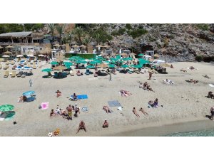 Alanya'da hava sıcaklığının 30, deniz suyu sıcaklığının ise 24 dereceye çıktığı bugünlerde yerli ve yabancı turistler, Kleopatra Plajı'nda yoğunluk oluşturdu. Sabah saatlerinden itibaren plajı dolduran tatilciler, denize girerek serinledi. Kimi turistler şezlonglarında güneşlenmeyi tercih ederken, çocuklar ise kumda oyun oynayarak keyifli vakit geçirdi.