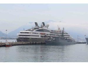 Antalya'nın Alanya ilçesine Kuşadası'ndan gelen L'Austral gemisi demirledi. Gemideki yolcular ilçenin tarihi yerlerini gezerek fotoğraf ve video çekti.
