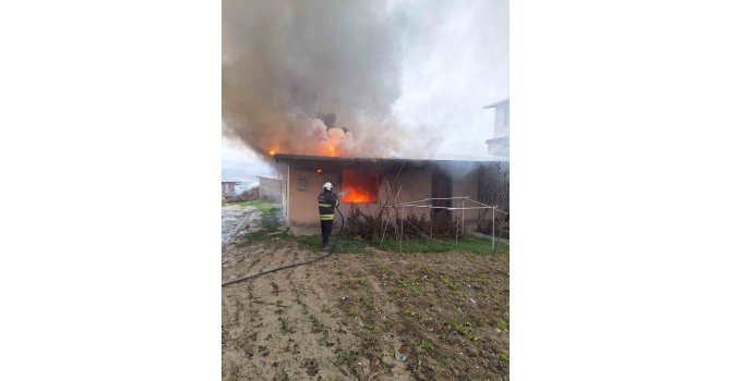 Hatay'da alevlere teslim olan müstakil ev kullanılmaz hale geldi.