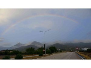 Osmaniye'de etkili olan kuvvetli sağanak yağış sonrası Amanos Dağları üzerinde ortaya çıkan gökkuşağı seyrine doyumsuz görsel şölen sundu.