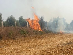 Osmaniye'nin Kadirli ilçesinde mısır tarlasında çıkan anız yangını zeytin bahçesine sıçramadan söndürüldü.