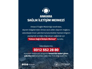 Bakanlıktan yapılan açıklamada, "Ankara İl Sağlık Müdürlüğü tarafından, deprem bölgelerinden Ankara iline sevk edilen deprem mağduru vatandaşların yakınlarına bulundukları hastane bilgisini paylaşmak ve doğru bilgi akışını sağlamak için "Ankara Sağlık İletişim Merkezi" kuruldu. Vatandaşlar, 0312 552 28 80 numaralı telefonunu arayarak Ankara'da tedavi gören yakınlarının durumları hakkında 7/24 bilgi alabilirler" denildi.