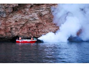 Antalya Büyükşehir Belediyesi, yaz aylarında artan sivrisinek ve haşere popülasyonuyla mücadele kapsamında ilaçlama tekneleri falezleri denizden ilaçladı.