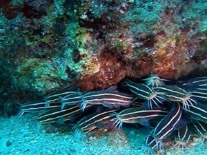 Yaklaşık 13 metre derinlikte çizgili kedi balığı sürüsüne rastladığını ifade eden Bilgin, "Bu balık sürüsüne Korsanlar Mağarası'nın yaklaşık 13 metre derinliğindeki bir taşın altında rastladım. Elimde de küçük sualtı kameram vardı. Kameramla balıkların görüntülerini çektim. Araştırma yaptığımda da ilk defa rastladığım bir tür olduğunu tespit ettim. Dikkat edilmesi gereken istilacı bir balık, fazla düşmanı olmadığı için bu türler çok çabuk üreme yapıyorlar. Diğer balıkların beslenme şekillerini bozdukları için onları yok edip kendileri istila ediyorlar. Bunlar tabii iklim değişikliklerinin de etkisiyle geliyor ve bizim denizlerimize yerleşip diğer türleri yok edebiliyorlar" diye konuştu.