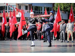 Tören, Vali Ersin Yazıcı ve Büyükşehir Belediye Başkan Muhittin Böcek'in meydandaki Atatürk anıtı önüne çelenk bırakmasının ardından Saygı Duruşu ve İstiklal Marşı okunmasıyla sona erdi.