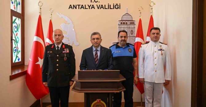 Antalya Valisi Hulusi Şahin, Kurban Bayramı dolayısıyla Antalya genelinde alınan asayiş ve trafik tedbirlerine yönelik basına açıklamalarda bulundu. Antalya Valiliği Hükümet Konağında gerçekleştirilen Basın Bilgilendirme Toplantısına Vali Hulusi Şahin'in yanı sıra, İl Jandarma Komutanı Tuğgeneral Tarık Hekimoğlu, İl Emniyet Müdürü İlker Arslan ve Sahil Güvenlik Grup Komutanı Yarbay Tolga Coşkun ve basın mensupları katıldı.