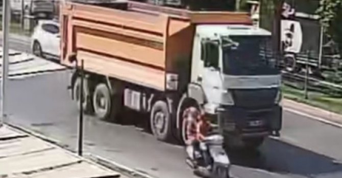 Antalya'da motosiklet ile ilerleyen aileye kamyonun çarptığı anlar güvenlik kameralarına yansıdı. Yaralı babanın, acı içerisinde kızına sarılarak feryadı yürek dağladı.