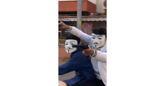 Antalya'da, ünlü hacker grubu Anonymous'un kullandığı maskeleri takan 2 genç, motosikletle seyir halindeyken oyuncak silahlarla korku saldı. Sosyal medyada yayınlanan görüntüler sonrası harekete geçen polis, 4 şüpheliyi gözaltına alırken silahların oyuncak olduğu belirlendi.