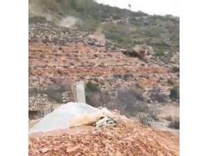 Antalya'nın Alanya ilçesinde dağdan kopup evlere doğru yuvarlanan dev kayalar panik oluşturdu. Korku dolu anları, bölge sakini bir kadın çığlık çığlığa cep telefonuyla kaydetti.