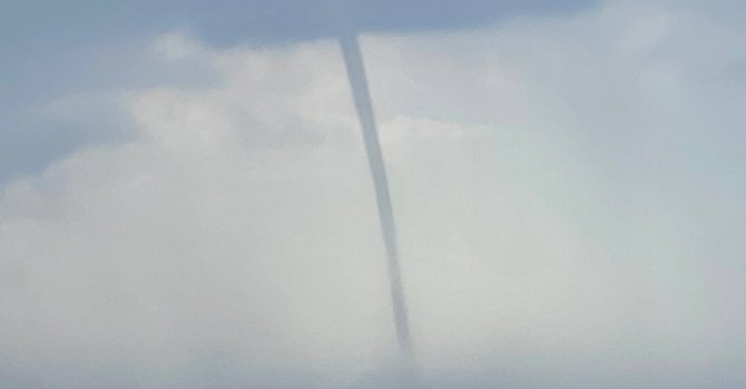 Antalya'nın Alanya ilçesinde deniz üzerinde görünen hortum korkuttu. O anları otelin balkonundan ve sahillerden kayda alan turistler ise şaşkınlıklarını gizleyemedi.