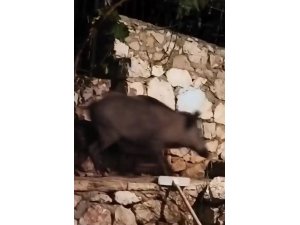 Kaş ilçesinde ise yetişkin bir yaban domuzu, vatandaşın evinin bahçesine girdi. Neye uğradığını şaşıran ev sahibi, hemen yanı başından geçen domuzu cep telefonuyla kayda aldı.