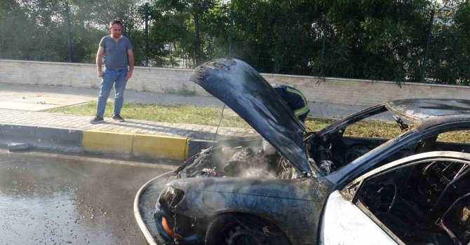 Antalya'da evine giderken otomobilinin motor kısmından duman çıktığını fark eden sürücü, aracı yol kenarına çekti. Arac, sürücüsünün gözleri önünde küle döndü.