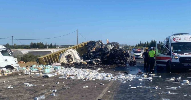 Antalya'nın Aksu ilçesinde iki tırın çarpışması sonucu meydana gelen trafik kazasında 1 kişi hayatını kaybetti, 1 kişi yaralandı.