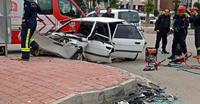 Kaza, saat 10.30 sıralarında Kepez ilçesi Dumlupınar Bulvarı üzerinde yaşandı. Edinilen bilgiye göre, hastaneden dönen İbrahim Çot'un (60) kullandığı 07 AAU 08 plakalı otomobil ile Mesut Ateş (52) himayesindeki 07 B 1985 plakalı otomobil kavşağa geldiği sırada çarpıştı. Çarpışmanın şiddetiyle araçlar etrafa savrulurken, sürücü İbrahim Çot ve yanındaki eşi Ayşe Çot (55) otomobilde sıkıştı. Diğer araç sürücüsü Mesut Ateş de baş ve yüzünden yaralandı. İhbarın üzerine olay yerine itfaiye, polis ve sağlık ekipleri sevk edildi.
