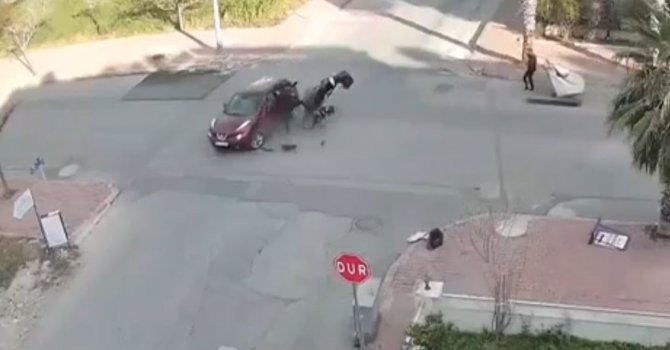 Kaza, dün 17.40 sıralarında Konyaaltı ilçesi Gürsu Mahallesi'nde yaşandı. Edinilen bilgiye göre, sürücü isimleri öğrenilemeyen otomobil ve motosiklet, kavşağa geldiği sırada çarpıştı. Çarpmanın şiddetiyle motosiklet sürücüsü, başındaki kaskı ve motosikletin parçaları etrafa savruldu. Yere düşen motosiklet sürücüsünün yardımına ise o sırada yol kenarından geçen atık toplayıcı bir kişi koştu.