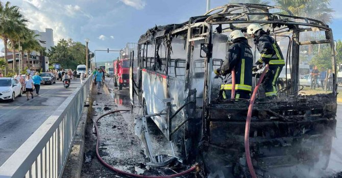 Antalya'nın Alanya ilçesinde, seyir halindeki öğrenci servis midibüsü alev alev yandı. Midibüs şoförü kendini dışarıya atarken, aracın içerisinde öğrenci olmaması büyük bir facianın önüne geçti.