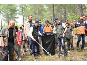 Konuşmasının ardından Vali Hulusi Şahin, öğrenciler ve vatandaşlarla birlikte ormanlık alanda çevre temizliği gerçekleştirdi.