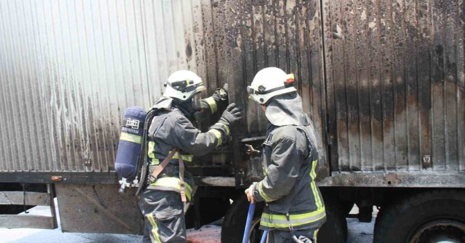 Antalya'nın Serik ilçesinde park halindeyken çıkan yangında kapalı kasa bir kamyon alev alev yandı. Sürücüsünün son anda fark ettiği yangın, itfaiyenin müdahalesiyle söndürüldü.