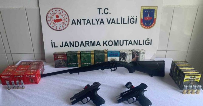 Antalya İl Jandarma Komutanlığı Kaçakçılık ve Organize Suçlarla Mücadele ve Gündoğmuş İlçe Jandarma Komutanlığı ekipleri tarafından Gündoğmuş İlçesinde ikamet eden şahsın, ruhsatsız av tüfeği ve kuru sıkı tabanca ticareti yaptığı tespit edildi. Şüpheli şahsın ikamet etmiş olduğu adreste yapılan ev ve iş yeri aramasında; 2 adet tabanca, 1 adet ruhsatsız av tüfeği ve bin 165 adet fişek ele geçirildi. Konu ile ilgili olarak şüpheli şahıs hakkında adli işlem başlatıldı.