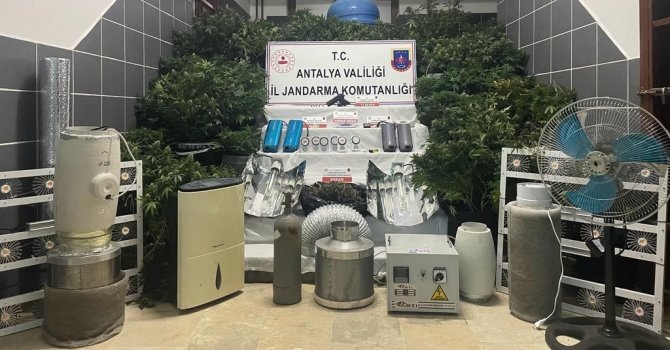 Antalya'da jandarma ekipleri tarafından bir seraya düzenlenen uyuşturucu operasyonunda 2 kilo 500 gram skunk ve her bir kökte ortalama 25 sömek skunk bulunan 110 kök skunk bitkisi ele geçirildi.