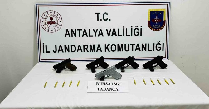 Antalya'da silah kaçakçılığı yaptığı tespit edilen 1 şüpheli, jandarma ekiplerince yakalandı. Üzerinde ve özel eşyalarında yapılan aramada 5 ruhsatsız tabanca il şarjörler ele geçirilen şüpheli, sevk edildiği mahkemece tutuklandı.