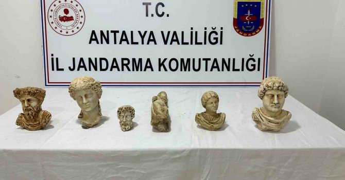 Antalya'nın Manavgat ilçesinde Jandarma ekiplerinin gerçekleştirdiği tarihi eser operasyonunda, Roma Dönemi'ne ait 5 kafa figürü ve insan figürü olmak üzere 6 tarihi eser ele geçirildi. Jandarma olayla ilgili 4 şüpheliyi gözaltına aldı.