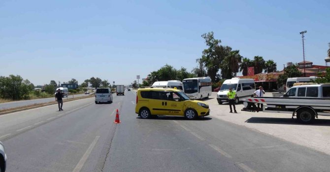 Edinilen bilgiye göre, kaza Alanya-Manavgat D-400 Karayolu Doğançam kavşağı yakınında meydana geldi. Alanya'dan Manavgat ilçe merkezine turistlerle seyir halinde olan Mevlüt Arı'nın kullandığı 07 J 0582 plakalı ticari taksiye kavşağa yaklaştığı sırada sağından gelen plakası ve sürücüsü belirlenemeyen bir kamyon yandan çarptı. Çarpmanın şiddetiyle refüjü aşan ve karşı yöne geçip durabilen ticari taksideki turistler büyük korku yaşadı. Karşı yönden başka araçların gelmemesi başka bir kazayı önledi. Turistler bir başka taksi ile yolculuklarına devam etti.