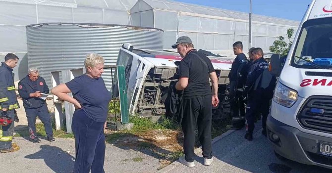 Kaza, Gündoğdu Mahallesi Yörük Mustafa Bey Bulvarı'nda sabah saatlerinde meydana geldi. Alınan bilgiye göre, havalimanından Rus turistleri alan 07 AVN 799 plakalı tur midibüsü, henüz ismi öğrenilemeyen sürücüsünün direksiyon hakimiyetini kaybetmesi sonucu muz serasının yanına yan devrildi. Kazayı görenlerin haber vermesi üzerine olay yerine çok sayıda ambulans, polis ve itfaiye ekibi sevk edildi.