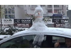 Antalya'nın Serik ilçesinde vatandaşlar yaptıkları kardan adamı aracın üzerinde gezdirerek şehir turu attı. Bir başka vatandaş ise kar heyecanını, "Antalya Serik'te ilk karı topladım. Allah'ım bembeyaz. Görüyorsunuz, anlatmaya gerek yok" diyerek sevincini anlattı.