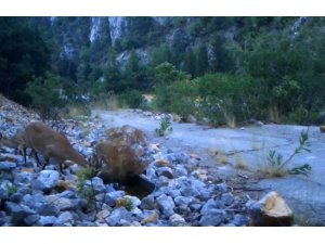 Doğa Koruma ve Milli Parklar 6. Bölge Antalya Şube Müdürlüğü Akseki Şefliği tarafından yaban hayvanlarını izleme çalışmaları devam ediyor. Şeflik tarafından arazilerin farklı bölgelerine yerleştirilen suluklar fotokapan ile takip ediliyor. Antalya DKMP tarafından yayınlanan görüntülerde de yol kenarına bırakılan suluklardan su içmeye gelen anne ve iki yavru yaban keçisinin fotokapan görüntüleri paylaşıldı.
