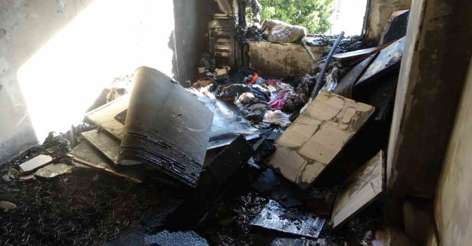 Antalya'da çıkan yangında bir ev kullanılamaz hale gelirken, kiracı olarak evde yaşayan vatandaş yanan eşyalarını görünce üzüntü yaşadı.