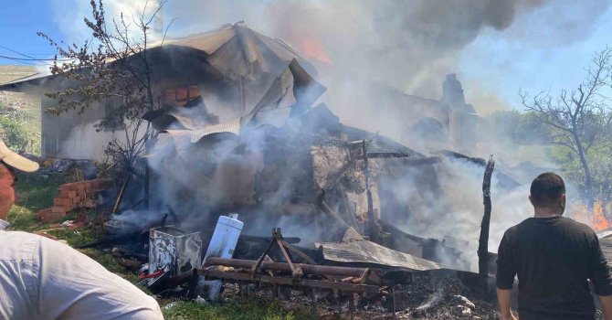Yangın sonrası Ahmet Kuş'a ait ev kullanılamaz hale gelirken ahırda buluna 2 adet küçükbaş kurbanlık hayvan telef oldu.