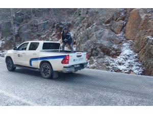 Antalya Büyükşehir Belediyesi, Alanya'nın kırsal bölgelerinde yolların trafiğe açık kalması için çalışma yapıyor. Büyükşehir ekipleri, yüksek kesimlerde tuzlama çalışması başlattı.