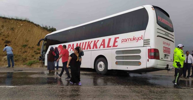 Kaza, saat 14.00 sıralarında Korkuteli-Denizli karayolunun 23'üncü kilometresi Saksağan Beli mevkisinde meydana geldi. Alınan bilgiye göre, Denizli'den Antalya'ya gelmekte olan Pamukkale firmasına ait Filiz C. (50) yönetimindeki 35 PK 906 plakalı otobüs, yağmur nedeniyle kayganlaşan yolda kontrolden çıktı. Otobüs şarampolde bulunan toprak yığınına vurarak durabildi. İhbarın ardından bölgeye çok sayıda itfaiye ve sağlık ekibi sevk edildi. Kazada yaralanan 10 yolcunun ilk müdahalesi olay yerinde yapıldı. Kazada ağır yaralanan olmazken, bazı yolcular kontrol amaçlı hastaneye kaldırıldı.