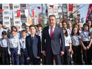 Antalya Büyükşehir Belediyesi, 23 Nisan Ulusal Egemenlik ve Çocuk Bayramı'nı belediye önünde düzenlediği törenle kutladı. Belediye orkestrasının marşlarla eşlik ettiği etkinlikte, Başkan Muhittin Böcek ve Cengiz Topel İlkokulu 4. sınıf öğrencisi Deniz Erdemir, Atatürk Anıtı'na çelenk sundu. Törene çok sayıda çocuk da katıldı. Saygı duruşu ve İstiklal Marşı'nın okunmasının ardından belediye binasına geçildi.