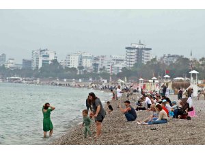 Yağmur beklenen Antalya'da Ramazan Bayramı'nın 1'inci günü, vatandaşlar havanın kapalı olmasına karşın dünyaca ünlü Konyaaltı Sahili'ne gelerek denizin keyfini çıkardı.