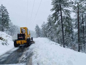 Antalya'nın yüksek kesimlerinde kar yağışı etkili olurken, Büyükşehir Belediyesi ekipleri karla mücadele çalışması yapıyor. Akseki, Alanya ve Gündoğmuş ilçelerinde kapanan yollar iş makineleri ile açılıyor.