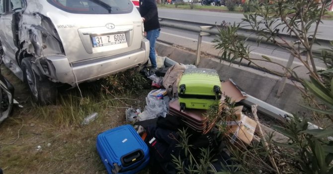 Hatay'dan otomobille Antalya'daki oğlunun yanına gelen depremzede çift, Manavgat ilçesinde geçirdikleri trafik kazasında ağır yaralandı. Depremzede ailenin evlerinden kurtarabildikleri eşyalar kaza sonucu etrafa dağıldı.