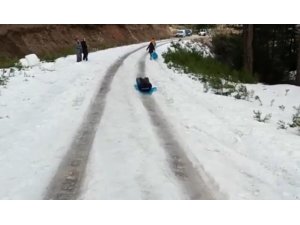 Burdur'un Gölhisar ilçesinde bulunan Böğrüdelik Yaylası mesire alanına giderek aileleri ile keyifli vakit geçirmek isteyen vatandaşlar buzlanma nedeniyle ilerleyemedi. Ebeveynler oldukları alanın tadını çıkarırken, çocuklar buzlanan yolda kayarak eğlendi.
