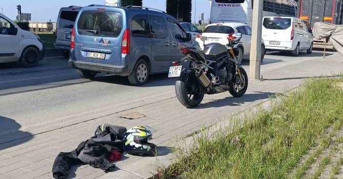 Antalya'da yolda kırmızı ışıkta bekleyen araçların arasından geçerek ilerleyen motosiklet yoldan yaya olarak geçmekte olan vatandaşa çarptı.