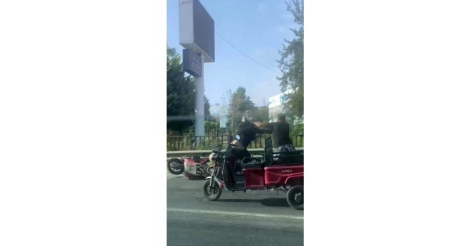 Olay, dün Konaklı Mahallesi'nde meydana geldi. Yolda seyir halinde olan motosikletli kurye ile elektrikli bisiklet sürücüsü araçlarını yol kenarına çekerek bilinmeyen bir nedenle tartışmaya başladı. Tartışma bir anda büyüyerek yumruklu ve tekmeli kavgaya dönüştü. Adeta boks maçını andıran anlar çevredeki bir otomobildeki yolcu tarafından cep telefonu kamerası tarafından kaydedildi.