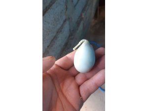 Kahramanmaraş'ın Elbistan ilçesinde bir vatandaşın kümesindeki Araucana cinsi tavuğun yumurtladığı armut şeklindeki mavi yumurta görenleri şaşırttı.