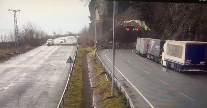 Artvin'in Kemalpaşa ilçesi Limanköy mevki Kopmuş Tüneli girişinde bu sabah meydana gelen heyelan kameralara saniye saniye yansıdı.