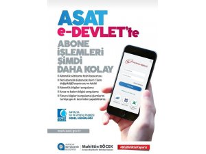 www.turkiye.gov.tr (e-devlet) sistemine giren vatandaşlar ASAT’ın sağladığı su ve atık su hizmetleri ile ilgili başta abonelik işlemleri olmak üzere pek çok işleme erişebiliyor. Aboneliğini sonlandırmak isteyenler internet üzerinden kolaylıkla “abonelik sözleşme feshi başvurusu” yapabilirken, abonelik devri veya isim değişikliği yapmak isteyenler başvuru ve takip sürecini e- devlet üzerinden yürütebiliyor.