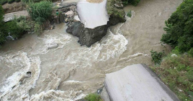Hatay'da aşırı yağışla birlikte debisi artan derenin üzerindeki köprü yıkıldı.