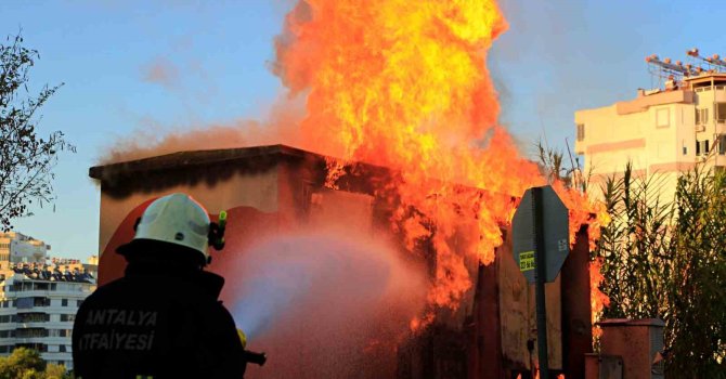 Antalya'da park içerisinde bulunan trafoda başlayan yangın kısa sürede büyüdü. Önce patlamaların yaşandığı trafo kısa süre içinde alevler içinde kalırken trafonun birkaç metre yakınında 2 adet kamyonette bulunan çok sayıda mutfak tüpü güvenli bir yere taşındı.