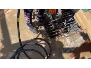 Hilti yardımı ile atık su giderinin mazgalını açmayı başaran itfaiye ekipleri, anne kedi ve 2 yavrusunu giderden çıkartmayı başardı.