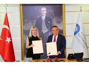 Akdeniz Üniversitesi Rektörü Prof. Dr. Özlenen Özkan ile Antalya Büyükşehir Belediye Başkanı Muhittin Böcek, Atıktan Sanata Heykel Yapımı ve Yanan Ağaçların Sesiyiz projeleri için iş birliği protokolü imzaladı.